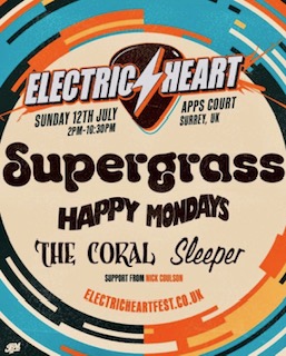 A day out in Walton on Thames beckons on July 12! Virtually walking distance from home, with the wonderful Supergrass, excellent The Coral and comedy band Happy Mondays; all too good to refuse - and not stupid Hyde Park prices.